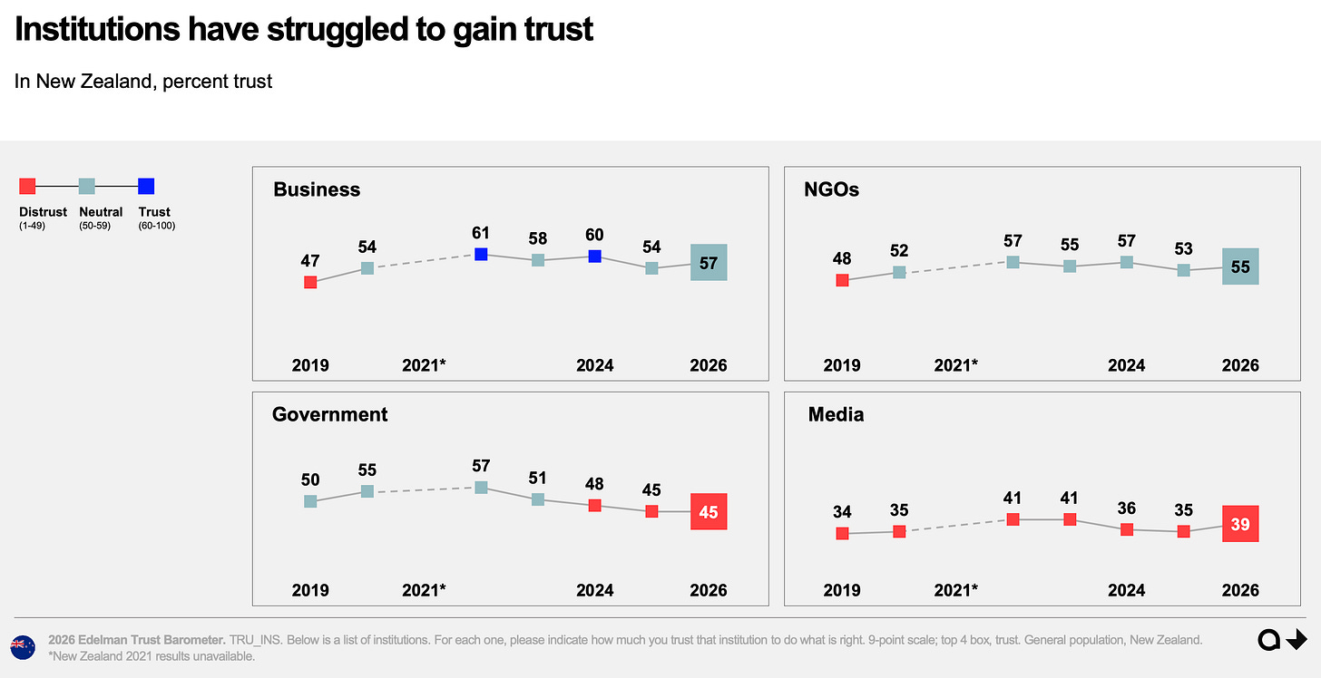 New Zealand’s annual trust survey is out. The trust figures are not good. But this year, the most alarming finding in the 2026 Acumen Edelman Trust Barometer isn’t really about trust at all. It’s about hope.