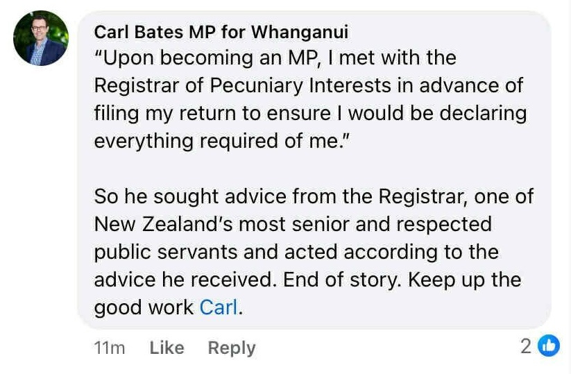 Thomas Coughlan (Herald): Whanganui MP Carl Bates deletes FB post praising himself after housing revelations