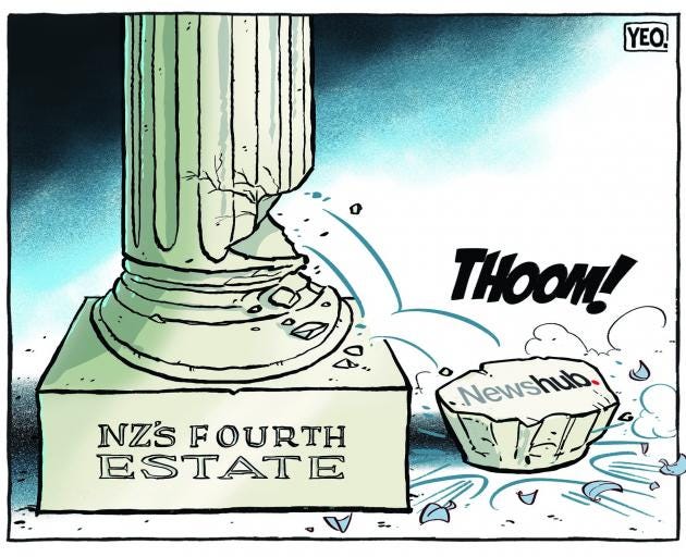 Democracy is the loser whenever a major media company disappears. We’ve seen a total consensus about this in the last two days – politicians, academics, and journalists have commented on the demise of Newshub, pointing out that a reduction in journalists reporting on and investigating current affairs and politics does not serve the democratic goal of an informed public.
